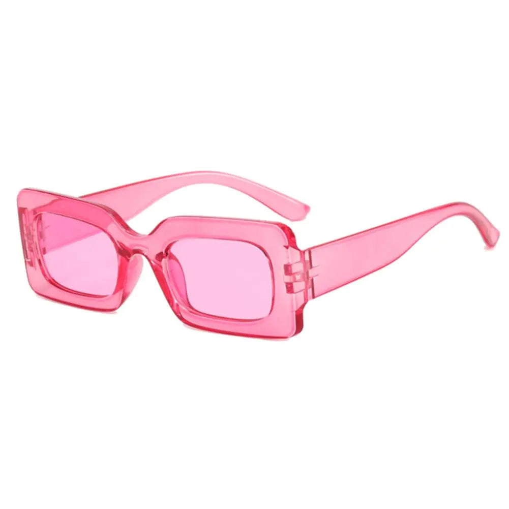 Embrace bold style with these retro-inspired rectangular sunglasses that elevate any look, day or night. Featuring UV400 lenses, they block 100% of harmful UVA and UVB rays, shielding your eyes from glare and long-term damage. Crafted from lightweight, durable plastic, the thick yet slim frame resists deformation and ensures all-day comfort without pinching your nose. With multiple lens colors available, you can customize your vibe and make a fearless fashion statement wherever you go. Dimensions: Lens Height 31 mm, Width 50 mm, Temple Length 145 mm, Nose Bridge 21 mm.